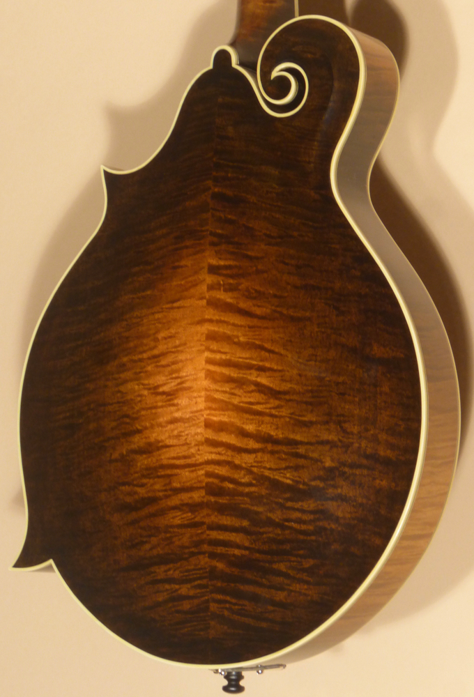 This 2011 Gilchrist F model 5 mandolin, #689, is a sweet sounding mandolin. All original, with beautiful woods, perfect workmanship and with a wonderfully nuanced, yet powerful, tone. No fret wear (you can tell it was played some, but no Vee dents at all). There is some slight hand wear through the finish on the back of the neck, only in the first position. There is no problem area, no repairs, etc.
